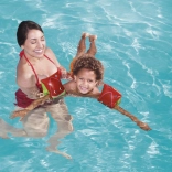 Twee onafhankelijke luchtkamers houden het kind stabiel boven water en ondersteunen de juiste houding tijdens het leren zwemmen.