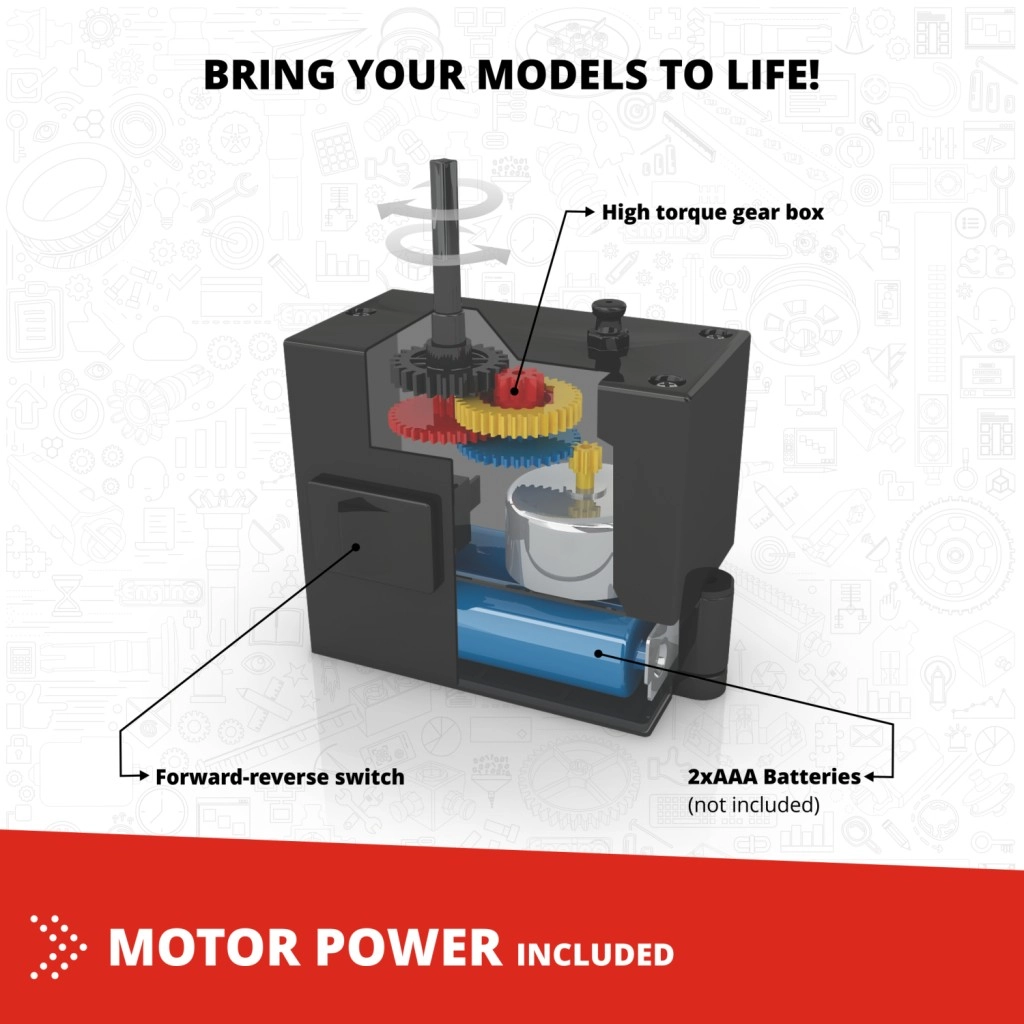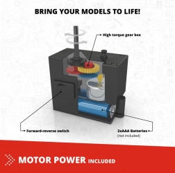 Inclusief motortje met instelbare rijrichting. Breng je modellen tot leven en laat ze rijden of bewegen.