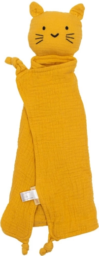 Gemaakt van 100% organisch katoen, dit knuffeldoekje zorgt voor een zachte en aangename aanraking die vriendelijk is voor de babyhuid. Met het schattige kattendesign in mosterdgeel wordt het al snel het favoriete maatje van ieder kind.