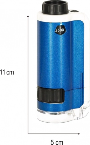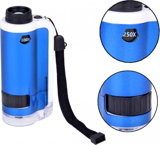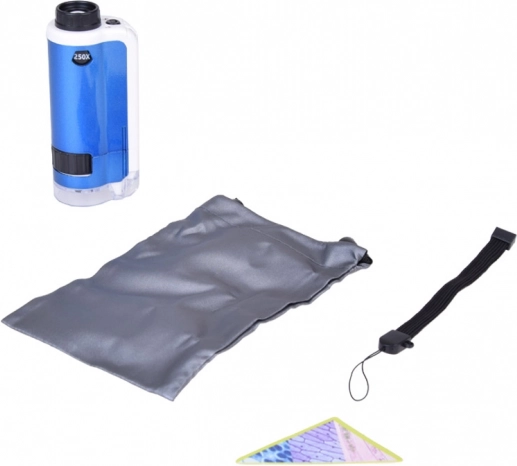 Ontdek de verborgen wereld met deze compacte pocketmicroscoop voor kinderen en volwassenen. Biedt vergroting van 100× en 250×, LED-verlichting voor een helder beeld en een duurzame metalen-kunststof behuizing. Dankzij het polskoord en het beschermzakje ideaal voor onderweg, op school en in het veld.