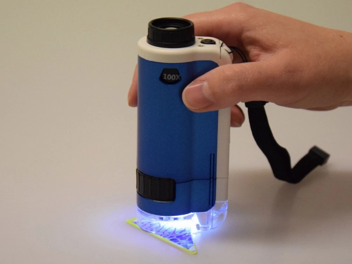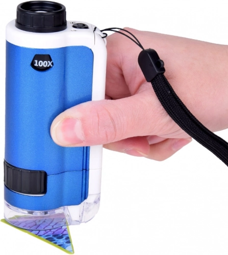 Met deze draagbare microscoop kun je eenvoudig bladeren, insectenvleugels, uienschillen, pixels van een scherm en nog veel meer onderzoeken – alleen je verbeelding is de grens. Eenvoudig scherpstellen en de geïntegreerde LED-verlichting zorgen voor een helder en scherp beeld, ook bij hogere vergroting.