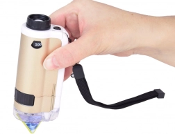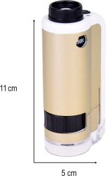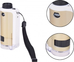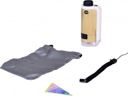 Het apparaat is eenvoudig te gebruiken: plaats de doorzichtige basis op het oppervlak van het onderzochte object, stel scherp met het draaikwieltje en kies indien nodig 100x of 250x vergroting. De duurzame constructie van metaal en kunststof, voeding 1× AAA 1,5 V en de meegeleverde accessoires maken het een geweldig educatief cadeau.