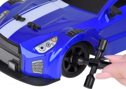 RC-auto, 2,4 GHz-controller, accu 7,4 V 500 mAh, set drift/terreinbanden, wielmoersleutel, waterdoseerder, USB-oplader, carrosserieklemmen
