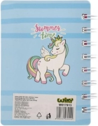Een schattig notitieboek met een eenhoornmotief dat elke liefhebber van sprookjesachtige designs zal verrassen. Het heeft een ringband, 60 gelijnde pagina’s en een pocketformaat van 9,5 × 12 cm. Dankzij het glinsterende venstertje op de omslag en 4 kleuropties is het ideaal voor schoolnotities, als dagboek of voor op reis.