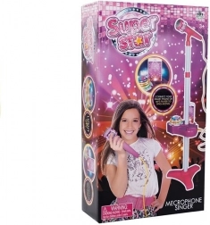 Start thuisconcerten met deze roze set voor kleine zangeressen en zangers. Biedt een interactief paneel met luidspreker, disco-projector met gekleurde lichtjes, 10 muziektracks, knoppen voor applaus en publieks­effecten en MP3/telefoon­aansluiting om mee te zingen met favoriete liedjes. De in hoogte verstelbare standaard groeit met het kind mee en stimuleert muzikale ontwikkeling, ritme en coördinatie.