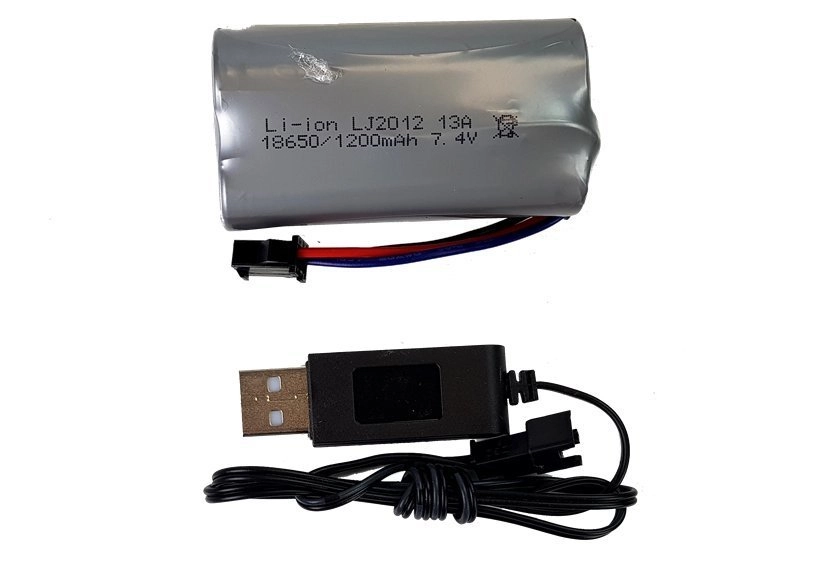 De oplaadbare Li‑ion batterij 7,4 V 1200 mAh levert genoeg energie voor langere ritten. De meegeleverde USB-oplader zorgt voor eenvoudig en comfortabel laden.