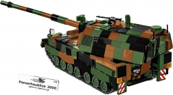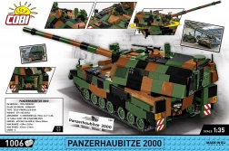De bouwset Panzerhaubitze 2000 brengt realistische militaire elementen, waaronder camouflagekleuren, een draaibare koepel en een beweegbaar kanon voor een authentieke speelervaring.