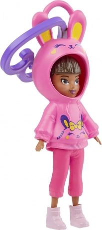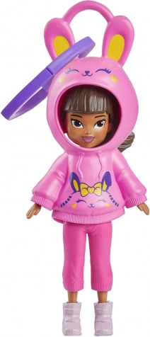 De roze hoodie met oortjes en de lieve konijnenuitdrukking vallen meteen op. Ideaal voor kleine verzamelaars en Polly Pocket-fans.