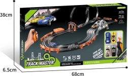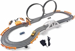 Ontdek de geweldige racebaan met een totale lengte van 520 cm die dynamisch en spannend speelplezier biedt voor elke speler. De set bevat twee auto's met verwisselbare carrosserieën, zodat je het uiterlijk van de voertuigen naar eigen voorkeur kunt aanpassen.