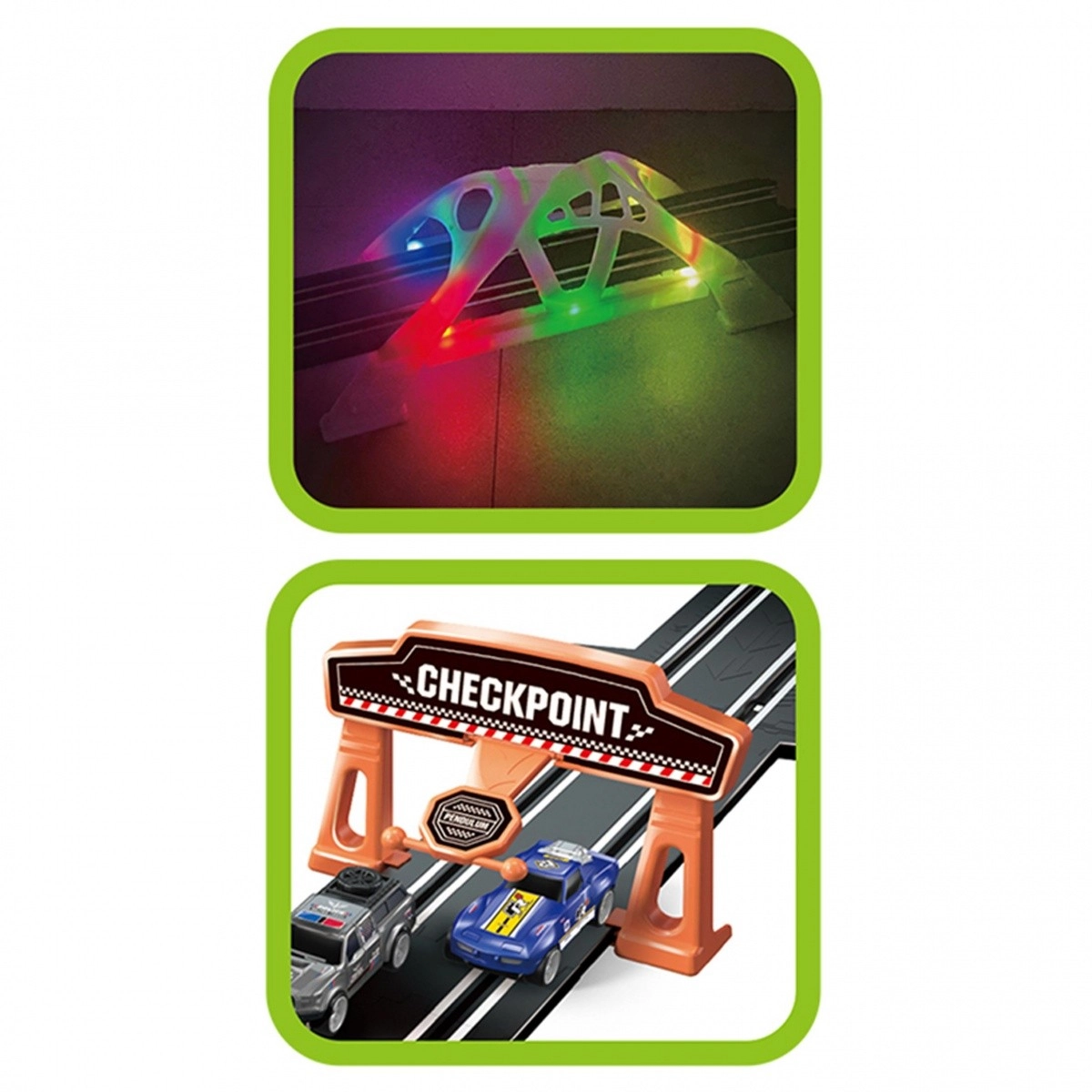 Dankzij twee loopings en een verlichte brug biedt deze baan uitzonderlijke race-ervaringen.