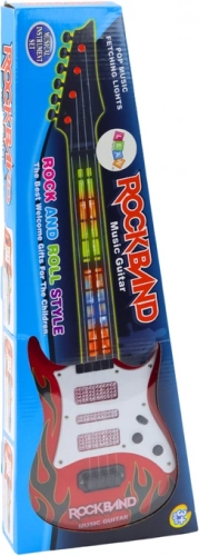 Kinder elektrische gitaar met lichtjes en melodieën in het rood. Ideaal voor jonge muzikanten, met lichteffecten, voorgeprogrammeerde melodieën en een comfortabele schouderriem. Stimuleert creativiteit en muzikale vaardigheden. Voor kinderen vanaf 3 jaa