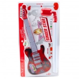 Verander de kinderkamer in een podium. De stijlvolle rode gitaar met microfoon op statief zorgt voor leuke lichteffecten en meerdere muziekmodi, zodat kinderen kunnen gitaarspelen, in de microfoon zingen of beide tegelijk. Eenvoudige bediening en draadloze werking op batterijen zorgen voor comfortabel en veilig spelen.