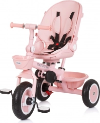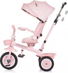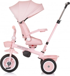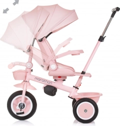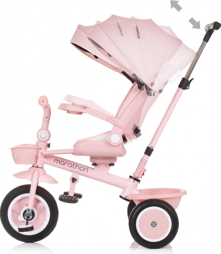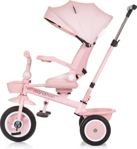 De driewieler met kap Marathon 2-in-1 Flamingo is ontworpen om maximaal comfort en veiligheid te bieden voor zowel kinderen als ouders dankzij de veelzijdige opties. In eerste instantie kunnen ouders de driewieler besturen met behulp van de comfortabele met eco-leer beklede duwstang, en zodra het kind groot genoeg is, kan het zelfstandig rijden.