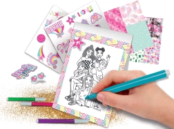 De inhoud van de set is ontworpen om de fijne motoriek, geduld en verbeeldingskracht te bevorderen. Kleurplaten met BARBIE-motieven worden aangevuld met stickers en glinsterende steentjes die de tekeningen een originele uitstraling geven.
