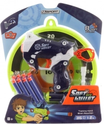 Op zoek naar eenvoudig en veilig speelplezier voor kinderen? Dit pistool met schuimkogels met zuignappen en een kleurrijk doelwit biedt een geweldige combinatie van spel en training van precisie. Dankzij de lichte constructie en ergonomische vorm ligt het goed in de hand en is het gemakkelijk te bedienen, ook voor jongere kinderen.