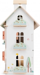 Dit prachtige houten poppenhuis nodigt kinderen uit in een knusse fantasiewereld. De kamers zijn versierd met behang en schattige illustraties die creatief spel en de ontwikkeling van sociale vaardigheden stimuleren. Openslaande luiken zorgen voor extra realisme en het afneembare dak onthult een royale zolder voor nog meer avonturen.
