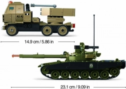 De lengte van de tank is 23,1 cm en het voertuig 14,9 cm. De set is intuïtief ontworpen en het eenvoudige bouwen stimuleert kinderlijke zelfstandigheid. De afmetingen van de verpakking zijn 47,5x33x6,7 cm, waardoor het een geschikt cadeau is met een aansprekend design.