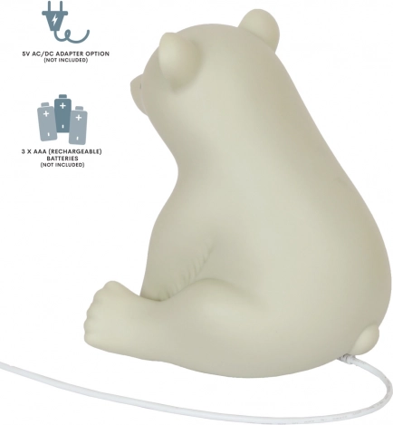Schattig, draadloos nachtlampje in de vorm van een witte ijsbeer met een zachte, rustgevende gloed die kinderen helpt rustig in slaap te vallen. Het wordt niet heet, is veilig om aan te raken en is dankzij het compacte formaat makkelijk mee te nemen, thuis én onderweg. Biedt 3 standen – aan, uit en 15‑minuten timer.