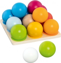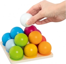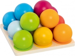 Houten bouwpiramide van kleurrijke balletjes