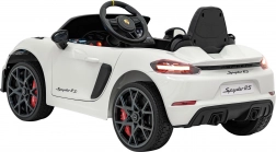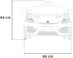 Stijlvolle elektrische kinderauto geïnspireerd op het model Porsche 718 Spyder RS met twee krachtige motoren 2×45 W, een 12 V 7 Ah accu, zachte EVA-banden en een kunstlederen stoel met veiligheidsgordels. Ouders waarderen de 2,4 GHz afstandsbediening met Stop-knop en drie snelheden. Voor extra plezier zijn er LED-lampen voor en achter, een audiopaneel met MP3/USB/AUX/Bluetooth en FM-radio en een soepele wegrijfunctie.