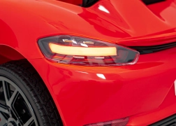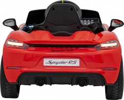 Stijlvolle elektrische kinderauto geïnspireerd op de sportwagen Porsche 718 Spyder RS voor een realistische rijbeleving dankzij 2× 45W motoren, een 12V 7Ah accu, zachte EVA-wielen en openende deuren. Ouders waarderen de 2,4 GHz afstandsbediening met Stop-knop, kinderen genieten van LED-verlichting, een audiopaneel met MP3/USB/Bluetooth en FM-radio en een comfortabel zitje van eco-leer met veiligheidsgordels.