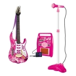 Roze elektrische gitaar met microfoon en versterker is het ideale speelgoed voor kleine muzikanten. Gemaakt van kwalitatief materiaal en voorzien van metalen snaren die gevoelig zijn voor aanraking, waardoor een echte gitaar wordt nagebootst.