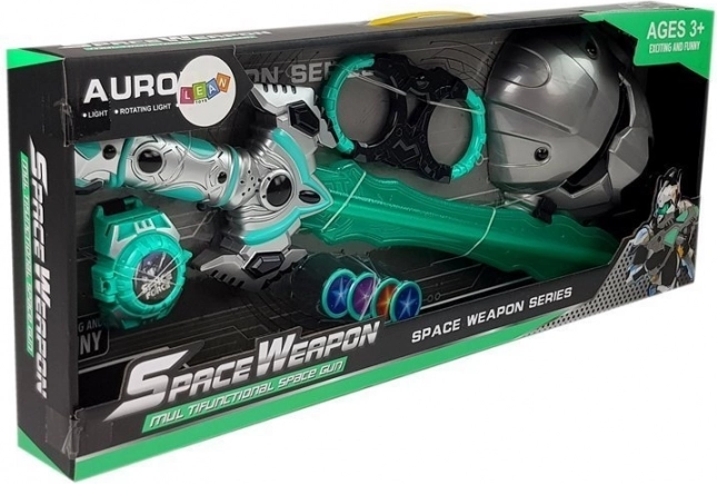 Kosmische speelgoedset met lichtzwaard, masker en schijfschieter