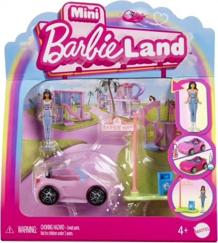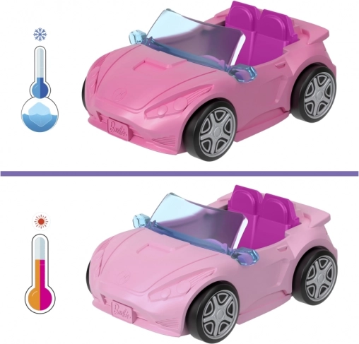 Bij onderdompeling in koud water verandert de auto van kleur, en in warm water keert hij terug naar het origineel – het effect is steeds opnieuw te herhalen. Door het formaat is de set makkelijk mee te nemen en een geweldig cadeau en aanwinst voor elke verzameling. Combineer met andere Mini Barbie Land-sets en bouw je eigen mini-stadje.