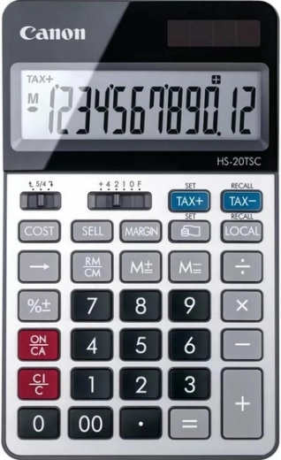 De Canon HS-20TSC blinkt uit door zijn compactheid en universaliteit. Het 12-cijferige instelbare LCD-scherm garandeert eenvoudige leesbaarheid van alle berekeningen. Dankzij de zonne-energievoeding met een verwisselbare batterij is deze rekenmachine altijd klaar voor gebruik.