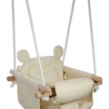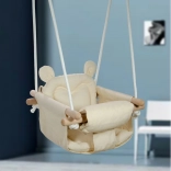De schommel is ontworpen met decoratieve elementen die doen denken aan de oren van een beer, wat speelsheid en comfort toevoegt.