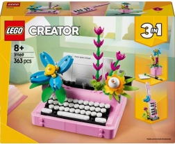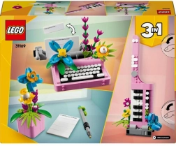 Met deze LEGO Creator 3-in-1 set kunnen fans van bloemen, kunst en design meerdere boeiende modellen maken. Deze mini-typemachine is versierd met vier kleurrijke bloemen en heeft een beweegbaar toetsenbord, een rol en een vel papier van bouwstenen.