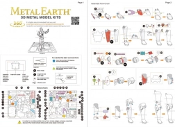 Werkwijze: Haal de afzonderlijke onderdelen uit de metalen platen. Verbind de onderdelen met elkaar via vergrendelingen gevormd door lipjes en openingen. Dit vereist handigheid en geduld, maar het resultaat is de moeite waard: een zeer realistisch meesterwerk!