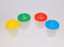 Praktische waterbeker met een veiligheidsdeksel dat morsen voorkomt bij omvallen. Ideaal voor gebruik bij kunstonderwijs of thuis schilderen.