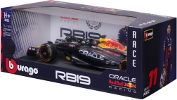 Ontdek het nauwkeurig uitgevoerde model van de RB19-racewagen in de iconische RED BULL-kleuren, met realistische details van chassis, aerodynamische oppervlakken en cockpit. De metalen uitvoering garandeert solide gewicht en duurzaamheid, terwijl hoogwaardige tampoprint de teamsponsors en het kleurschema van seizoen 2023 natuurgetrouw weergeeft.