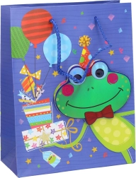 Deze cadeautas voor kinderen is een geweldige keuze wanneer je snel en mooi een kleiner cadeau wilt inpakken zonder knippen en plakken. Dankzij de afmetingen 23 × 18 × 8 cm is hij geschikt voor boeken, klein speelgoed of cosmeticasetjes. De vrolijke dierenmotieven toveren een glimlach op het gezicht en geven het cadeau een speelse uitstraling.