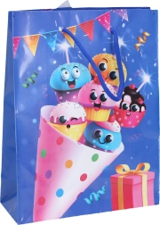 Schattige cadeautas voor kinderen in maat S met afmetingen 18 × 23 × 9 cm, ideaal voor het inpakken van kleine cadeaus. Biedt eenvoudig en snel inpakken zonder knippen en lijmen en is geschikt voor verjaardagen, feestdagen en andere vieringen. Verkrijgbaar in 4 verschillende designs.