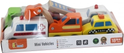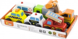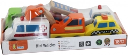 Ontdek een leuke set houten voertuigen voor de allerkleinsten: taxi, ambulance, graafmachine, politiewagen, brandweerauto en vrachtwagen. Dankzij de afgeronde vormen en het duurzame ontwerp zijn ze ideaal voor kinderen vanaf 18 maanden. Ze stimuleren de fijne motoriek, de fantasie en speelvaardigheden tijdens alledaagse avonturen.