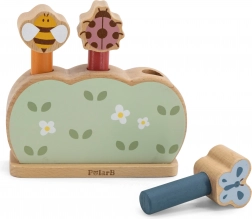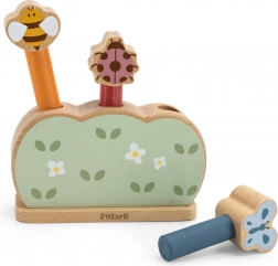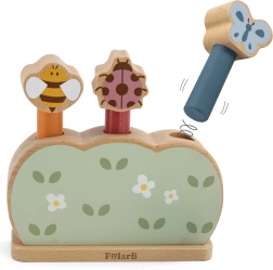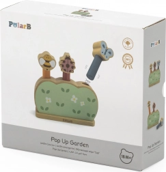 Het houten pop-up tuintje van POLARB is een speelse manier om kinderen kennis te laten maken met kleuren, diertjes en de logica van actie–reactie. Het kind drukt op het hoofdje van een figuur en die springt vrolijk uit de basis – een eenvoudig principe dat garant staat voor veel gelach en concentratietraining.