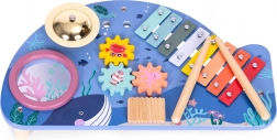 De muziektafel is rijkelijk versierd met oceaanmotieven en heeft kleurrijke elementen die direct de aandacht van het kind trekken.