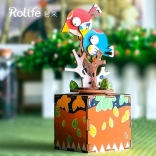 Geniet van het bouwen van een gedetailleerd, kleurrijk model van een vogelpaar op een tak, dat na voltooiing je plank tot leven brengt met een aangenaam geluid en subtiele beweging. Hoogwaardige houten onderdelen met nauwkeurige bedrukking passen precies in elkaar en vormen samen met metalen elementen een stabiele mechanische muziekdoos.