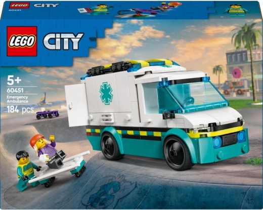 Ga op reddingsmissie met de set LEGO City Ambulance, ideaal voor kinderen vanaf 5 jaar. De opende zijpanelen en achterdeuren geven toegang tot de brancard en het medische gereedschap, inclusief een spuit, verband en medische tas. Inclusief ook een skateboard, ramp en twee minifiguren voor realistisch rollenspel.