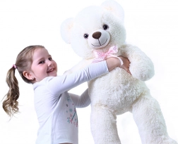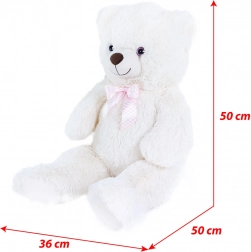 De pluchen beer Lily in crèmewit is een ideaal cadeau voor elke gelegenheid – geboorte, verjaardag of feestdagen. Hij is gemaakt van hoogwaardige, zachte pluche, heeft een vriendelijk gezichtje en een roze satijnen strik die hem een elegante look geeft. Met zijn hoogte van 78 cm is hij heerlijk knuffelbaar en warm.