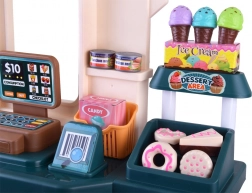 De set biedt realistische elementen voor geavanceerd winkelspeelplezier. Kinderen kunnen een draagbare barcodescanner gebruiken en in de rij staan zoals in een echte supermarkt.