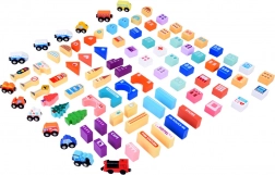 Ontdek de fascinerende wereld van houten constructies met deze houten stedenbouwset, die 89 elementen van plezier biedt. De set bevat sporen, batterijtreinen en verschillende kleurrijke blokken om unieke gebouwen te bouwen.