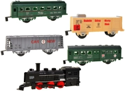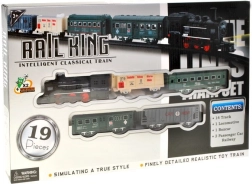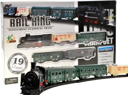 De elektrische trein is zorgvuldig ontworpen met aandacht voor detail en is ideaal voor beginnende en gevorderde treinenmodelbouwers. De locomotief wordt aangedreven door een klassieke stoommachine en de set bevat vier wagons – twee passagiers- en twee vrachtwagons. De totale lengte van de samengestelde trein is 65 cm. Een veiligheidsmechanisme zorgt voor voeding door middel van twee AA-batterijen, die niet bij de verpakking inbegrepen zijn.