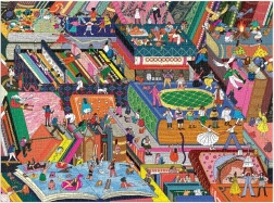 Een levendige scène met miniwerelden rond boeken en het stadsleven biedt tal van kleine verhalen die je keer op keer zullen vermaken.