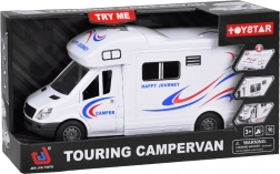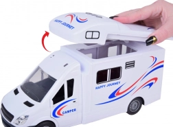 De camper heeft te openen deuren en een dak, die eenvoudige toegang tot het interieur bieden en het rollenspel bevorderen.