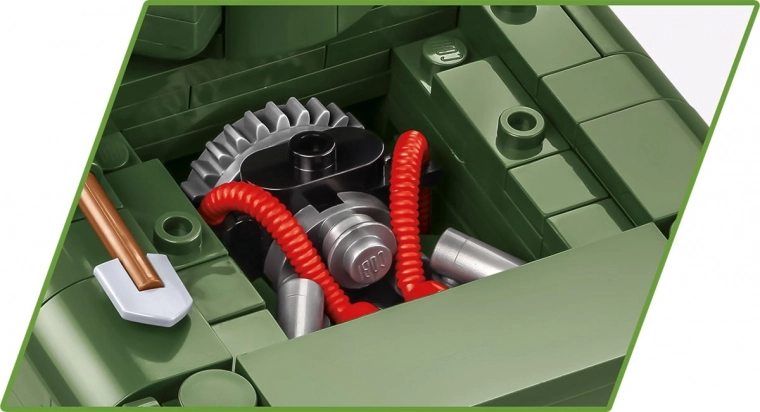 Een te openen serviceluik onthult de blokjesmotor. Ontdek de techniek van de Sherman en breid je collectie historische modellen uit.