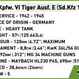 Dit nauwkeurig uitgewerkte model is gebaseerd op de beroemde tank Pz.Kpfw. VI Tiger Ausf. E met tactisch nummer 114, bekend van het Musée des Blindés in Saumur. Dankzij de rijke details, authentieke camouflage en functionele elementen geniet je zowel van het bouwen als van het spelen. Het bevat een uitneembare bouwsteenmotor Maybach HL 210, een draaibare koepel en kanon met elevatie, te openen luiken en realistische tractie van de rupsbanden.