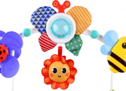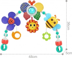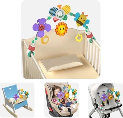 Hangende bijtjes, bloemetjes en zonnetjes stimuleren de zintuigen van het kind en bevorderen concentratie en nieuwsgierigheid.